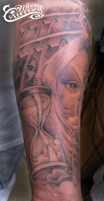 THIS IS A SLEEVE I DID FOR A DUDE FROM TEXAS. THE INK HE WAS THINKING ABOUT WAS SOMETHING TO REMEMBER THE TIME HE SPENT IN THE JOINT, HE CHANGED HIS LIFE AROUND BUT DIDN'T WANT TO FORGET WHERE HE CAME FROM.